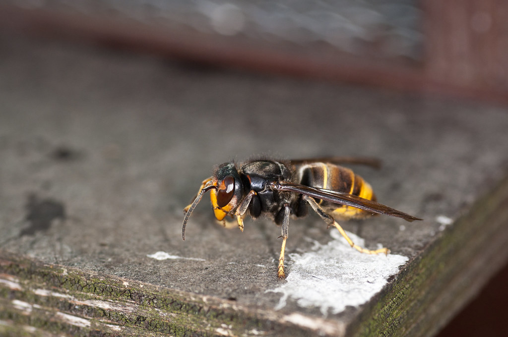 Debido a su mayor tamaño, las avispas asiáticas, se posicionan cerca del acceso de las colmenas de las abejas y son capaces de cazar a las abejas en pleno vuelo. En muchas ocasiones las decapitan con sus potentes mandíbulas y posteriormente trasladan los tórax de las abejas a su nido.